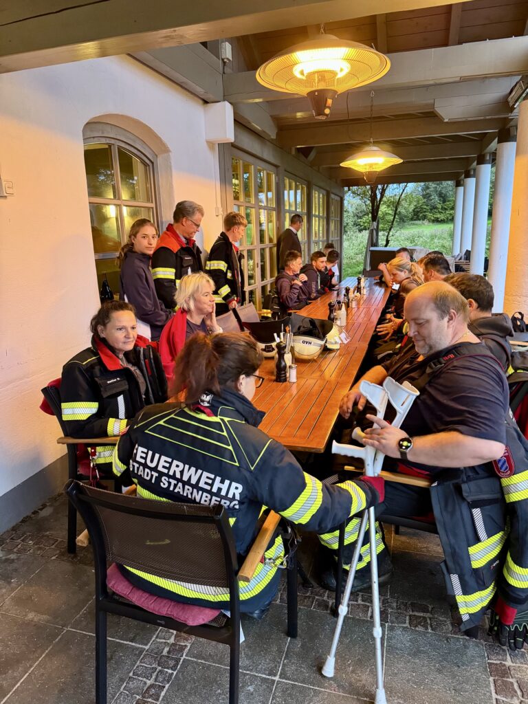 Im Anschluss an die erfolgreiche Begehung lud der Golfclub Starnberg die Einsatzkräfte zu einem gemeinsamen Essen und Getränk ein. In entspannter Atmosphäre bot sich die Gelegenheit für persönlichen Austausch, wodurch die Zusammenarbeit zwischen Feuerwehr und Club auch auf menschlicher Ebene gestärkt wurde.
